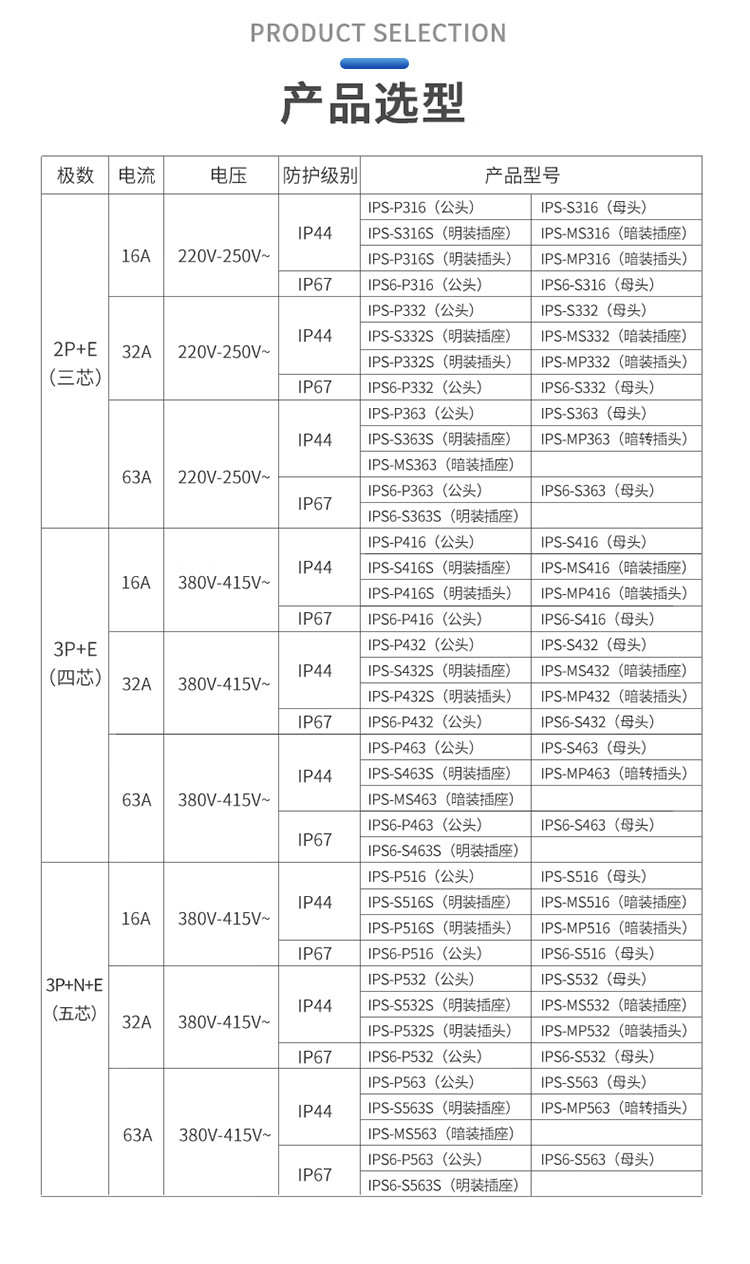 - 三相 16A/32A/63A/125A 工業連接器